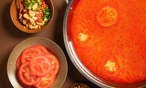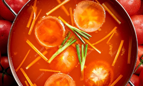番茄火鍋底料的整體湯底酸味會很濃郁,能與海鮮和各種魚類中的腥味相沖,起到中和口感和增加鮮香味的作用。